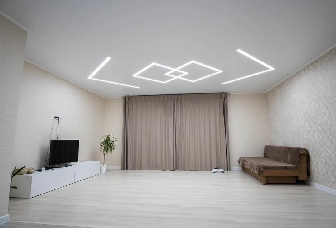 Натяжные потолки с эффектом световых линий подходят для разных типов помещений, включая гостиные, спальни, офисы и даже коммерческие объекты. Это универсальное решение, которое придает интерьеру современный вид.